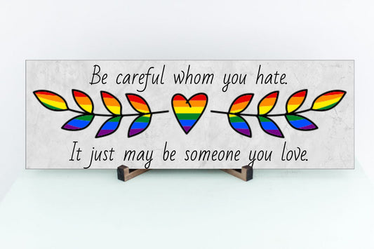 Be Careful Whom You Hate It Just May Be Someone You Love Pride Sign for Wall or Tabletop Display